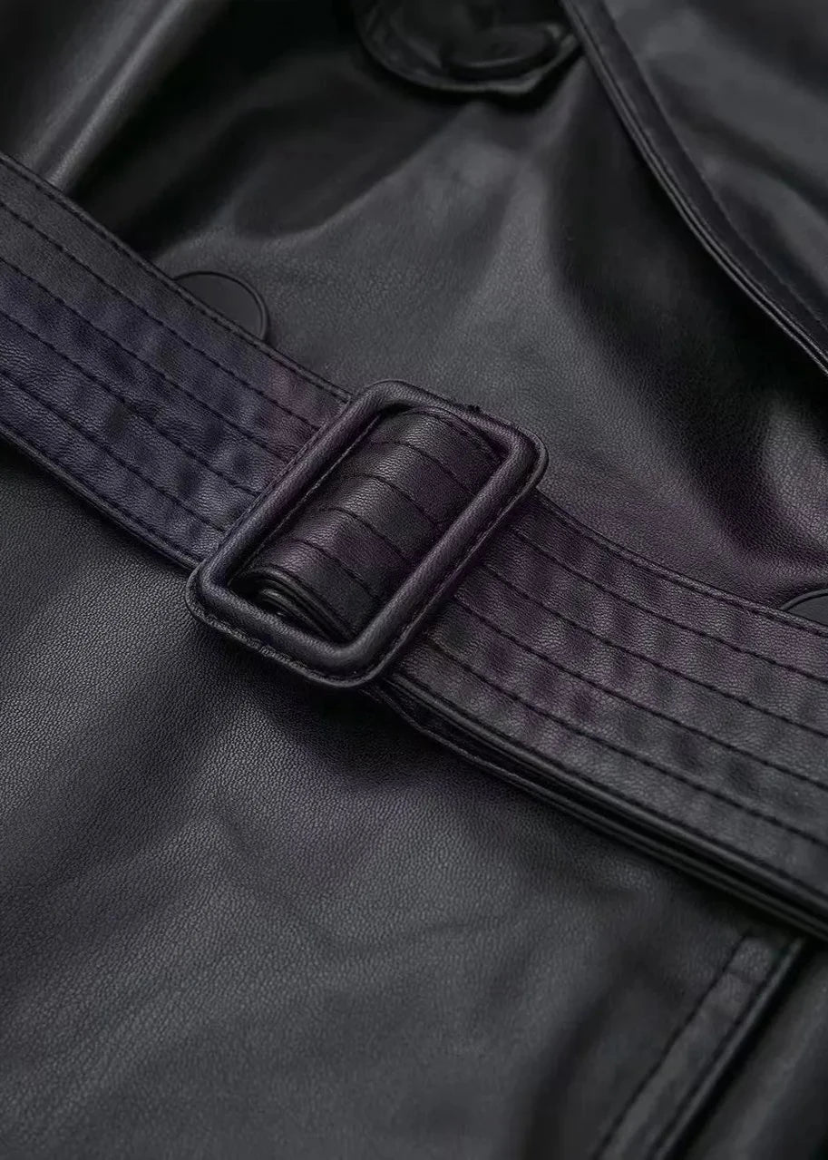 This sleek, black long leather wind coat is a timeless statement piece for those who appreciate both elegance and functionality. Crafted from high-quality leather, the coat is designed to provide protection from the elements while maintaining a sophisticated, polished appearance. The belted waist creates a flattering silhouette, while the minimalist design ensures versatility, allowing this coat to pair effortlessly with a wide range of outfits. Whether you're headed to a business meeting or a casual outing, this coat will keep you looking chic and feeling comfortable.