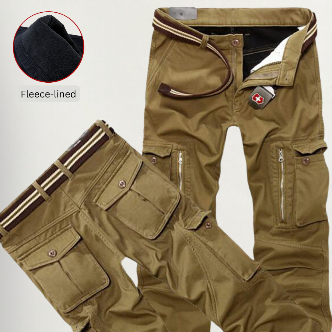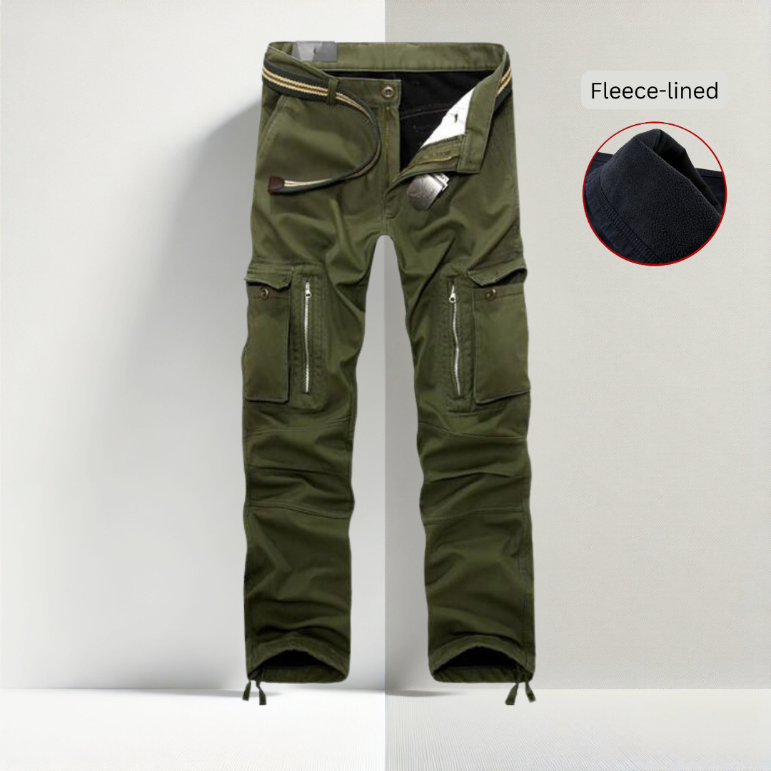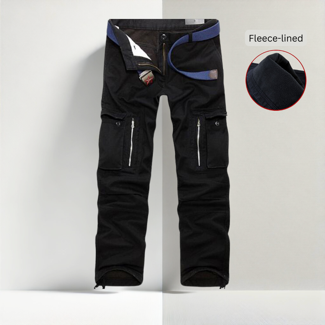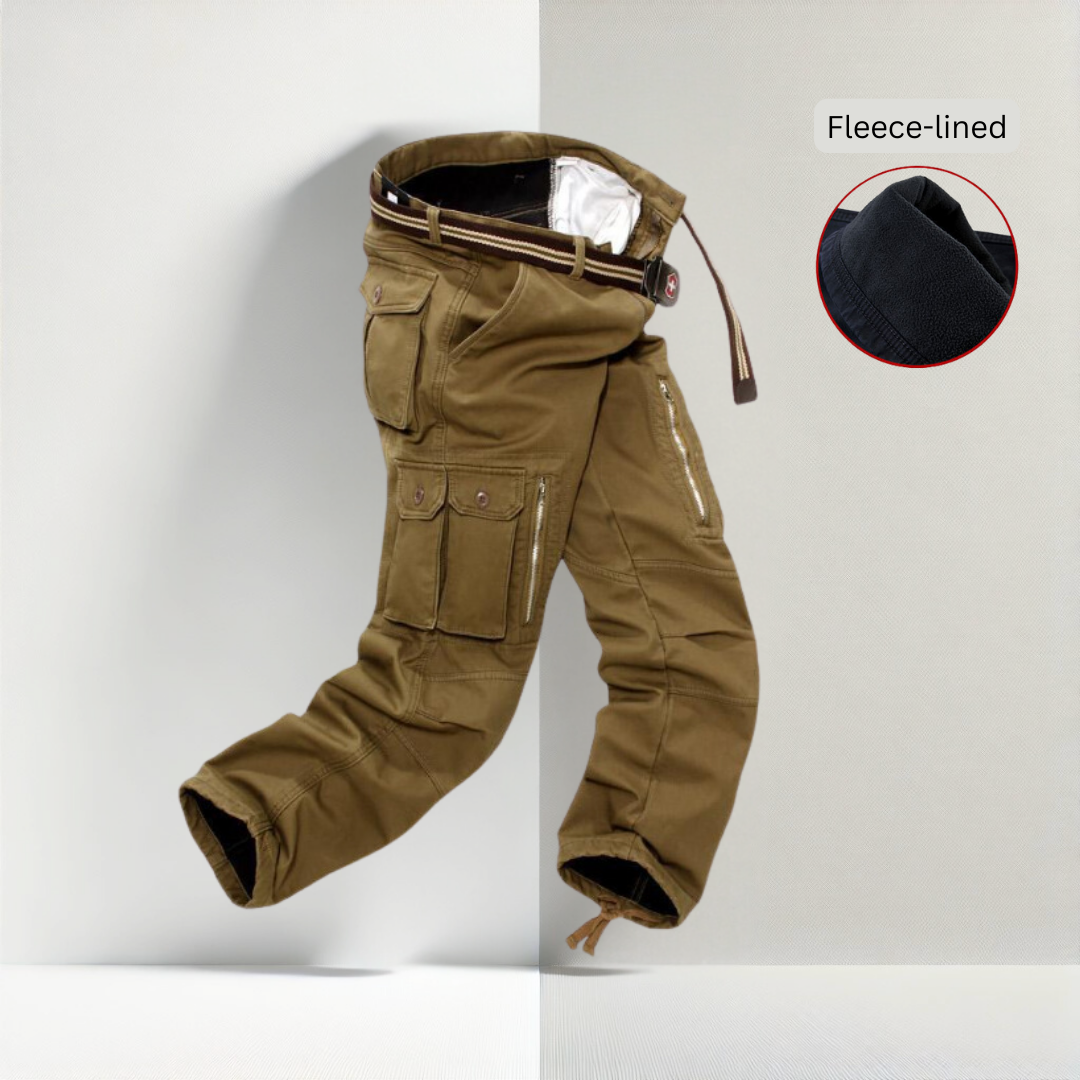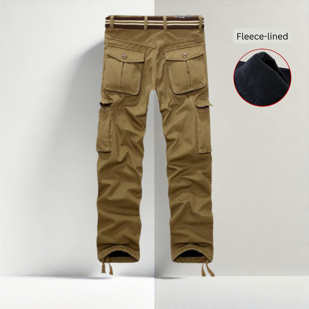 The Carter Fleece-Lined Cargo Trousers are crafted for warmth and functionality, making them an essential addition to your winter wardrobe. Featuring a premium 100% cotton outer shell and a thick fleece lining, these trousers provide unbeatable insulation while maintaining breathability. Designed with a relaxed fit and multiple utility pockets, they are perfect for outdoor adventures or casual everyday wear.