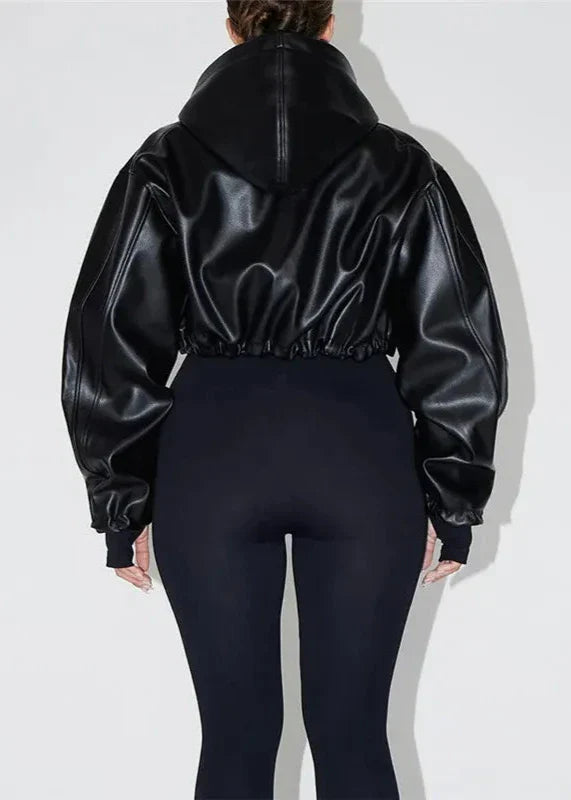 Faux Leather Hooded Jacket – Sleek Slim Fit Design