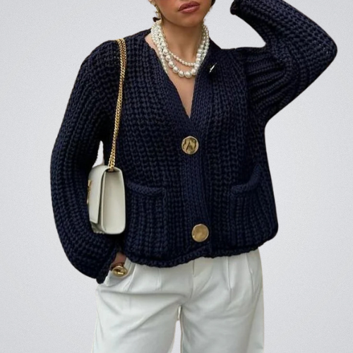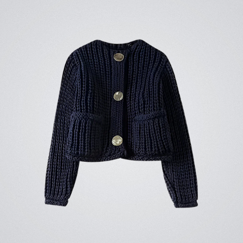 The Lydia | Vest offers both style and functionality with its chunky knitted design and cropped fit. Featuring a classic single row of round buttons and double front pockets, this vest is perfect for layering. Its solid color and versatile look make it ideal for adding a touch of cozy sophistication to any outfit. A wardrobe essential for comfort and fashion during the colder months.